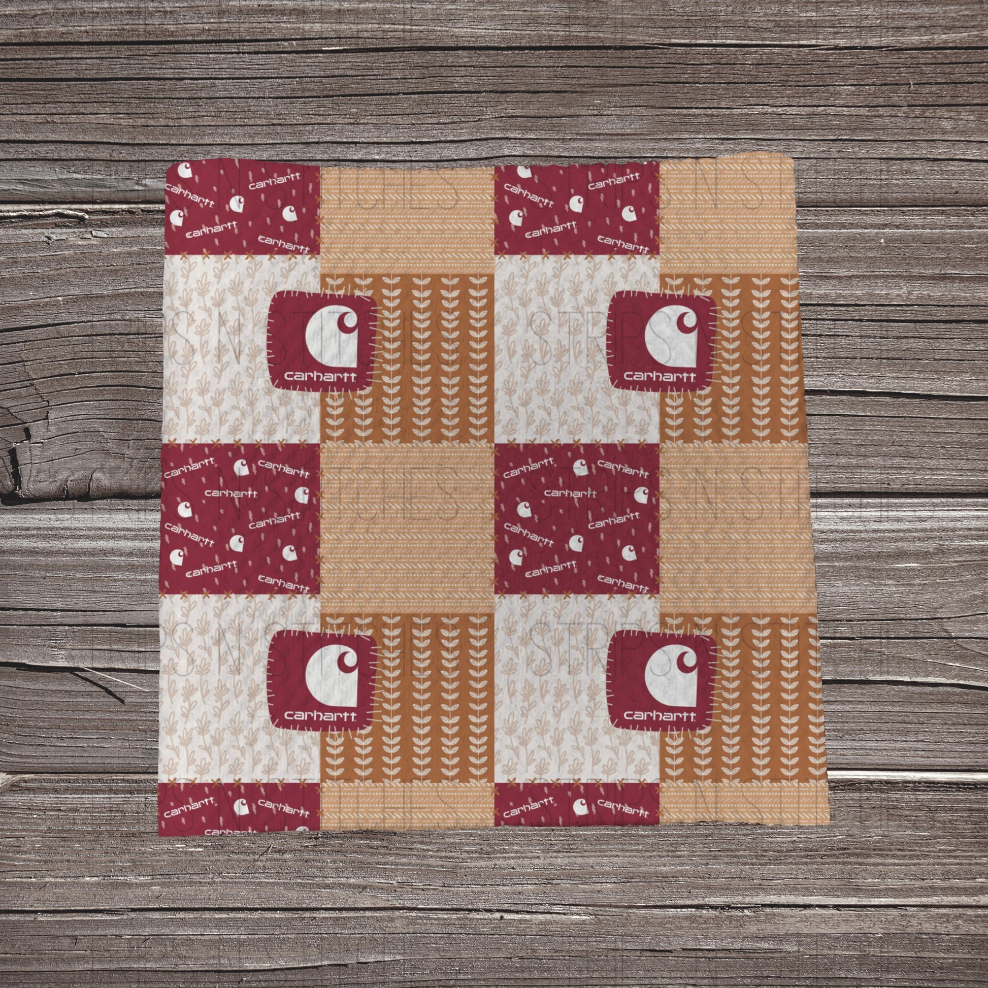 Maroon/Tan Carhartt Patchwork | Fabric Strip- Bow Making- Headwrap- Scrunchies