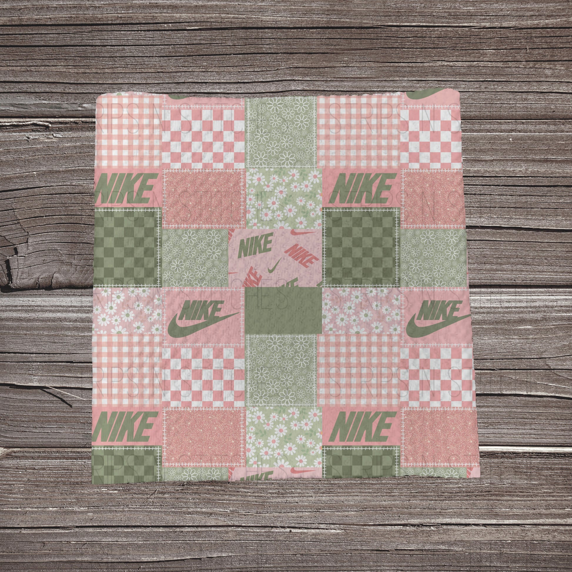 Pink & Green Curved Check Patchwork | Bullet Fabric Strip | Bow Making | Scrunchie