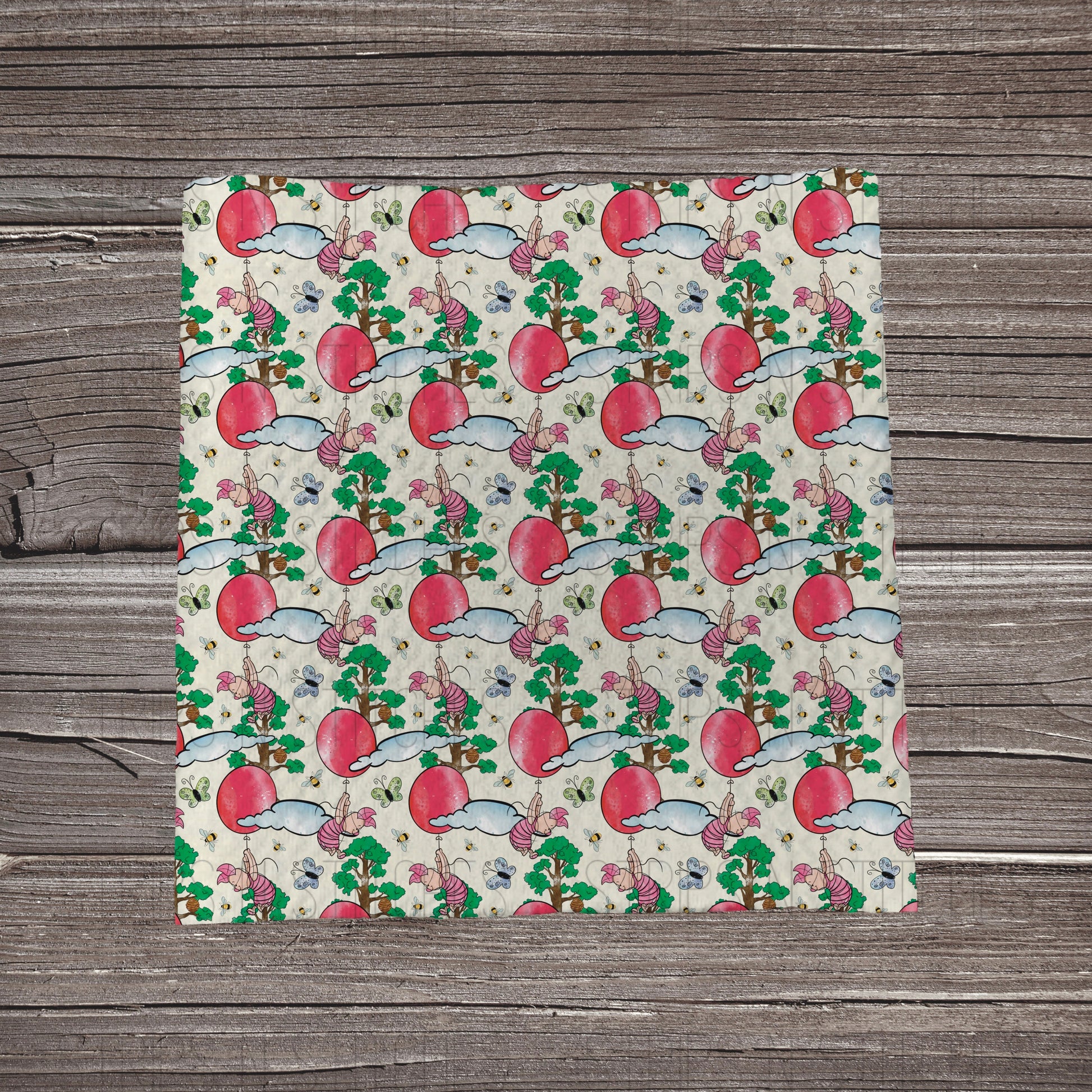 Pink Pig, Trees & Balloon | Fabric Strip- Bow Making |